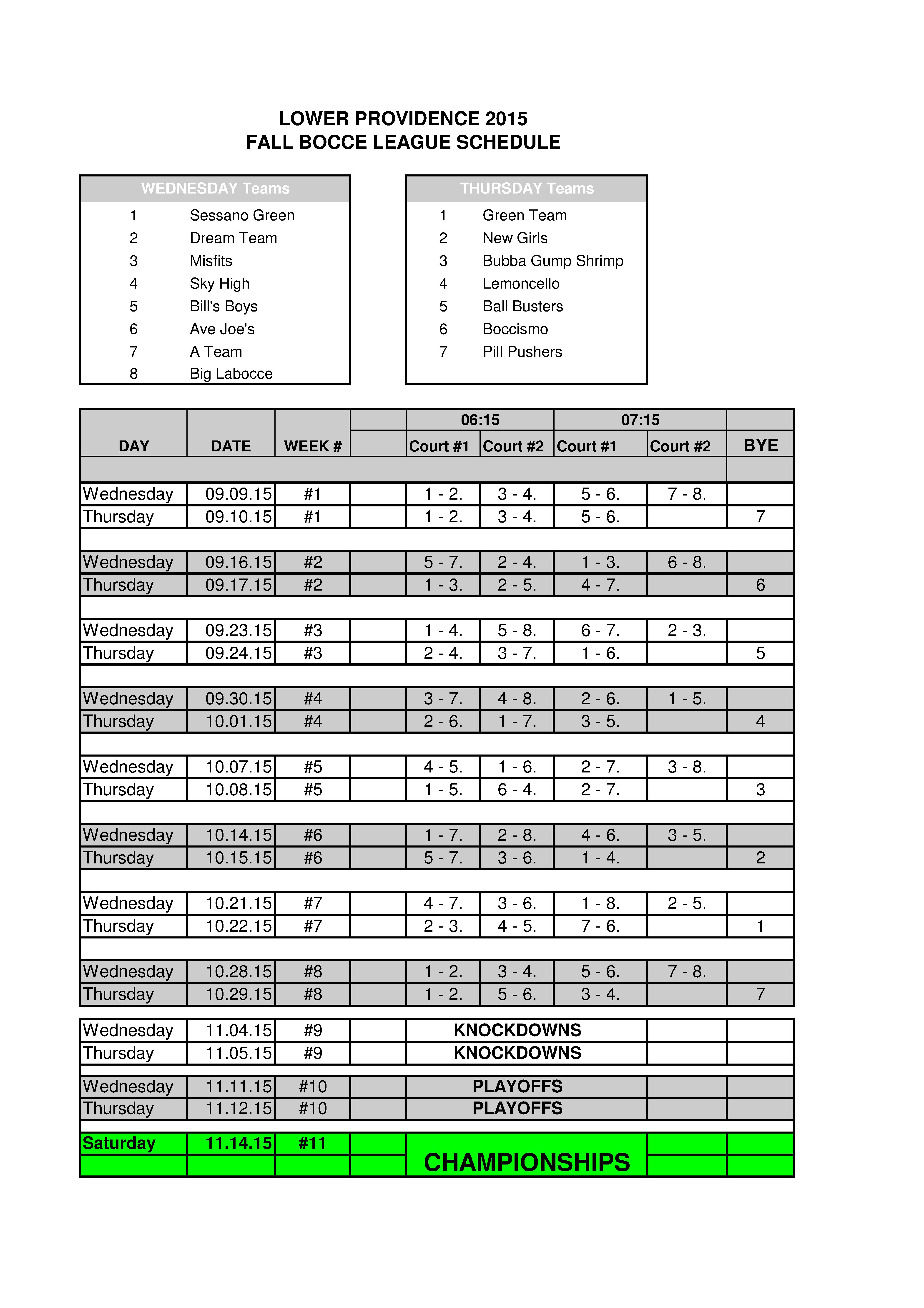 2 responses to “Week #1 Full Schedule – The Party Begins!!!!